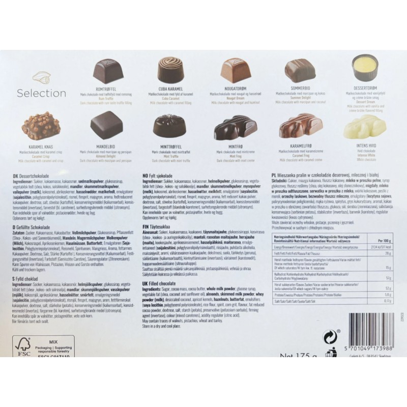 Ce coffret cadeau contient un assortiment de chocolats :