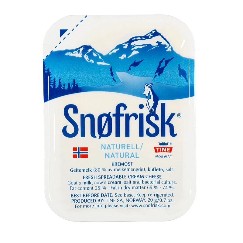 Snøfrisk® Natural est un fromage frais au lait de chèvre au goût doux. Il se consomme ainsi sur du pain ou en garniture de sandwich. Il peut aussi être utilisé comme ingrédient en cuisine ou en pâtisserie. Dégustez-le seul ou combinez-le avec vos aliments préférés, comme des framboises, de l’ail, du raifort, de la ciboulette ou des baies de genévrier. Il peut être aussi utilisé dans des sauces.