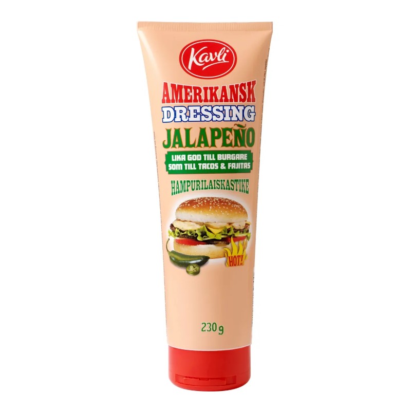 La sauce Américaine Jalapeño de Kavli combine l'onctuosité de la sauce originale et le piquant des vrais jalapeños. Un incontournable pour tous ceux qui veulent donner du piquant à leurs burgers et sandwichs.