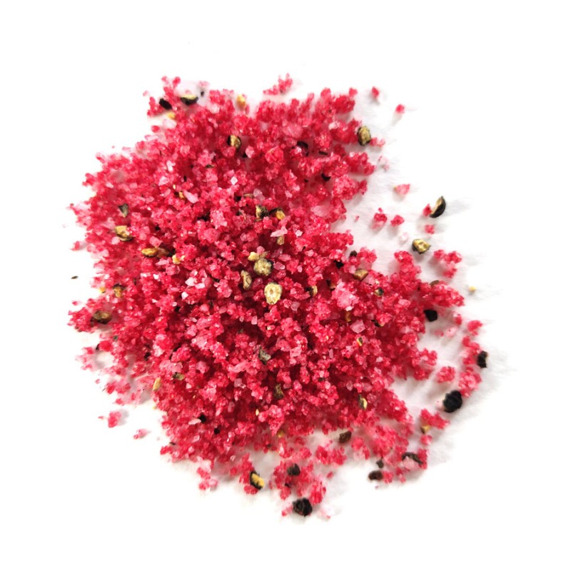 Un sel de Trapani aromatisé avec du poivre et des framboises acidulées.